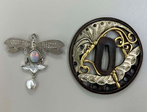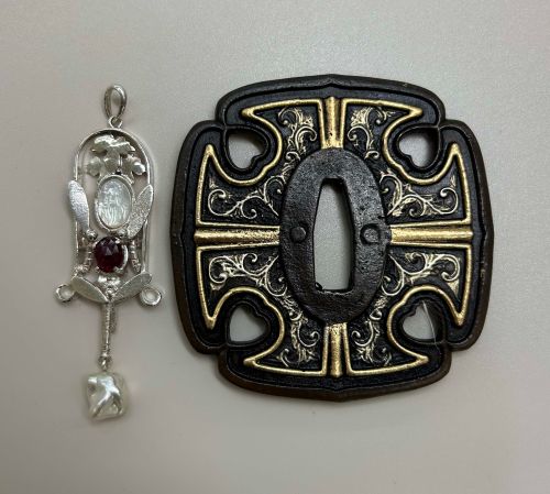 昭和63年 工房設立。伝統的なタヒチデザインと真珠を組み合わせたジュエリー製作に取り組み、平成9年よりフランスのアール・ヌーヴォー調のデザインを取り入れ、独自のスタイルを確立し製作しているブランドです。アール・ヌーヴォーの原点は日本の文化にあると言われています。江戸末期の刀の鍔(つば)をデザインの参考にし、アクセサリー制作いたしました。